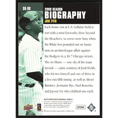 This is a 2010 Upper Deck Season Biography Jermaine Dye baseball card. The card is #SB-98 and pictures show condition.