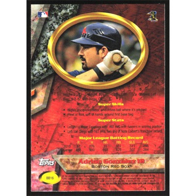 This is a 2011 Bowman Bowman's Best Adrian Gonzalez baseball card. The card is #BB16 and pictures show condition.