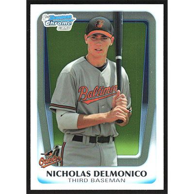 This is a 2011 Bowman Chrome Draft Prospects Nicholas Delmonico baseball card. The card is #BDPP26 and pictures show condition. Team(s): Baltimore Orioles