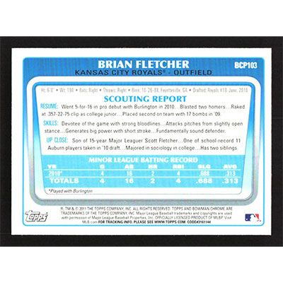 This is a 2011 Bowman Chrome Prospects Brian Fletcher baseball card. The card is #BCP103 and pictures show condition.
