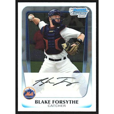 This is a 2011 Bowman Chrome Prospects Blake Forsythe baseball card. The card is #BCP81 and pictures show condition.