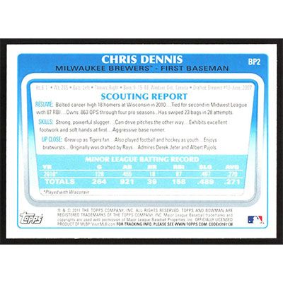 This is a 2011 Bowman Prospects Chris Dennis baseball card. The card is #BP2 and pictures show condition.