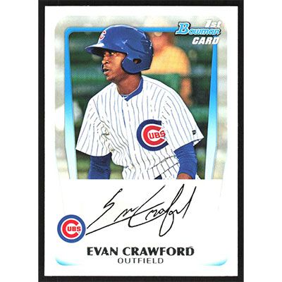 This is a 2011 Bowman Prospects Evan Crawford baseball card. The card is #BP71 and pictures show condition.
