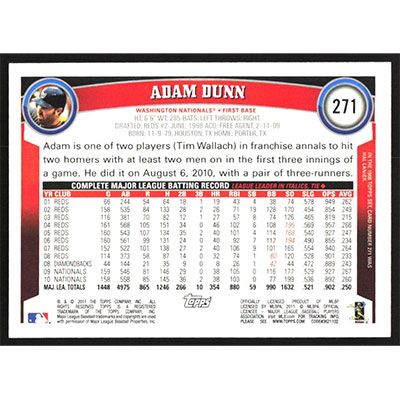 This is a 2011 Topps Adam Dunn baseball card. The card is #271 and pictures show condition.