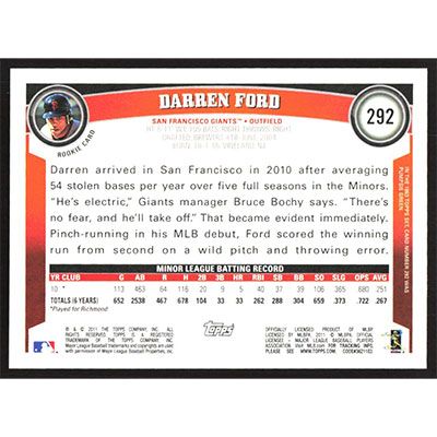 This is a 2011 Topps Darren Ford baseball card. The card is #292 and pictures show condition.