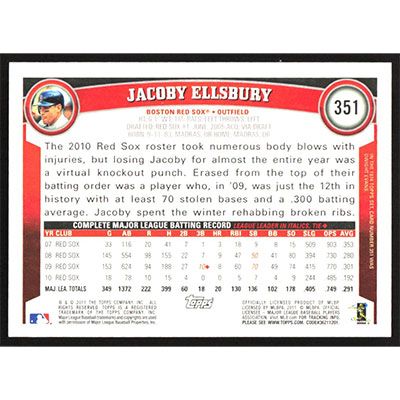 This is a 2011 Topps Jacoby Ellsbury baseball card. The card is #351 and pictures show condition.