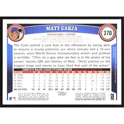 This is a 2011 Topps Matt Garza baseball card. The card is #370 and pictures show condition.