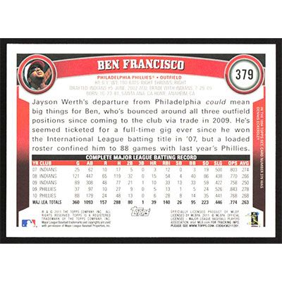 This is a 2011 Topps Ben Francisco baseball card. The card is #379 and pictures show condition.