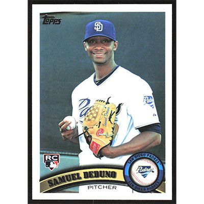 This is a 2011 Topps Samuel Deduno baseball card. The card is #412 and pictures show condition.