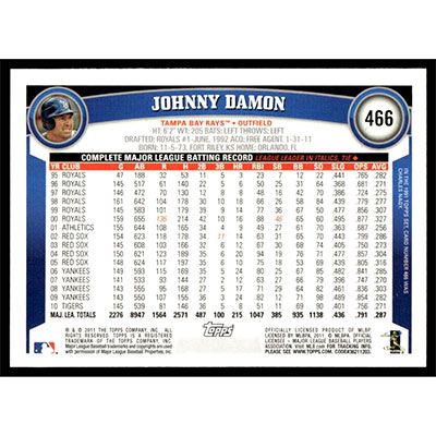This is a 2011 Topps Johnny Damon baseball card. The card is #466 and pictures show condition.