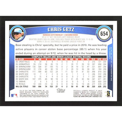 This is a 2011 Topps Chris Getz baseball card. The card is #654 and pictures show condition.