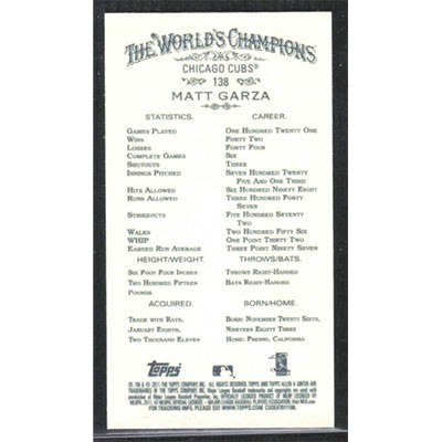 This is a 2011 Topps Allen & Ginter Mini Matt Garza baseball card. The card is #138 and pictures show condition.