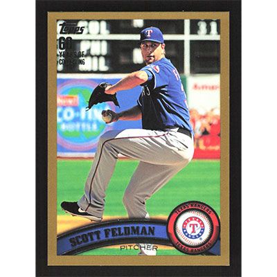 This is a 2011 Topps Gold Scott Feldman baseball card. The card is #498 and pictures show condition. This card is limited; #'d 0245/2011. Team(s): Texas Rangers