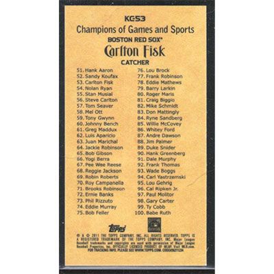 This is a 2011 Topps Kimball Champions Carlton Fisk baseball card. The card is #KC-53 and pictures show condition.