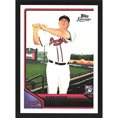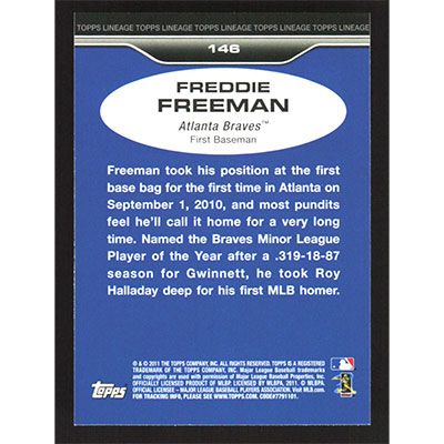 This is a 2011 Topps Lineage Freddie Freeman baseball card. The card is #146 and pictures show condition.