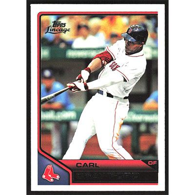 This is a 2011 Topps Lineage Carl Crawford baseball card. The card is #79 and pictures show condition.