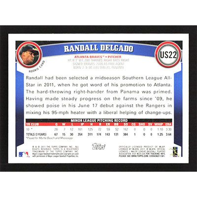 This is a 2011 Topps Update Randall Delgado baseball card. The card is #US22 and pictures show condition.