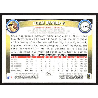 This is a 2011 Topps Update Chris Denorfia baseball card. The card is #US243 and pictures show condition.