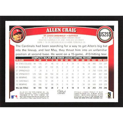 This is a 2011 Topps Update Allen Craig baseball card. The card is #US255 and pictures show condition.
