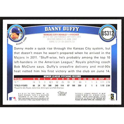 This is a 2011 Topps Update Danny Duffy baseball card. The card is #US312 and pictures show condition.