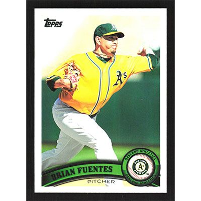 This is a 2011 Topps Update Brian Fuentes baseball card. The card is #US40 and pictures show condition.