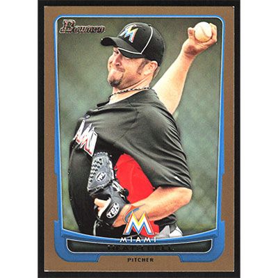 This is a 2012 Bowman Gold Heath Bell baseball card. The card is #138 and pictures show condition.