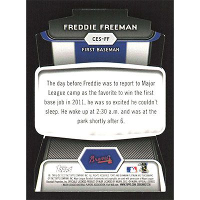 This is a 2012 Bowman Platinum Cutting Edge Stars Freddie Freeman baseball card. The card is #CES-FF and pictures show condition.
