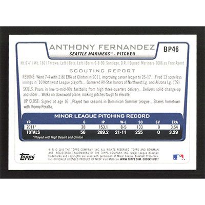 This is a 2012 Bowman Prospects Anthony Fernandez baseball card. The card is #BP46 and pictures show condition.