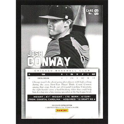 This is a 2012 Elite Extra Edition Josh Conway baseball card. The card is #99 and pictures show condition.