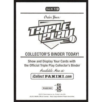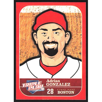 This is a 2012 Panini Triple Play Stickers Adrian Gonzalez baseball card. The card is #19 and pictures show condition.