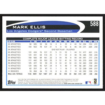 This is a 2012 Topps Mark Ellis baseball card. The card is #588 and pictures show condition.
