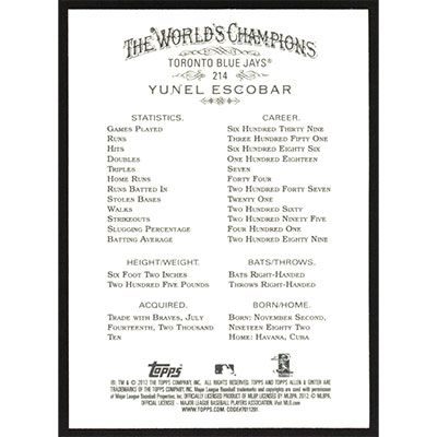 This is a 2012 Topps Allen & Ginter Yunel Escobar baseball card. The card is #214 and pictures show condition.