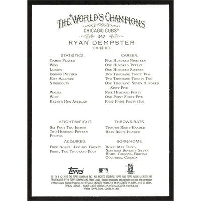 This is a 2012 Topps Allen & Ginter Ryan Dempster short print baseball card. The card is #342 and pictures show condition.