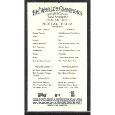 This is a 2012 Topps Allen & Ginter Mini Gold Neftali Feliz baseball card. The card is #267 and pictures show condition.
