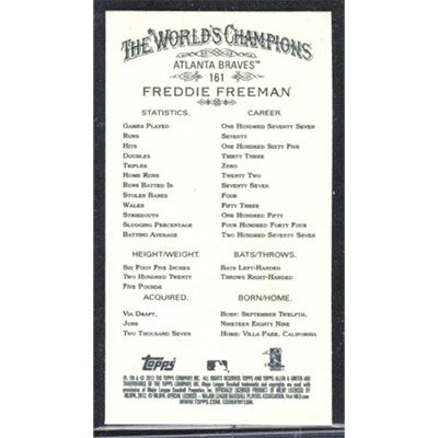 This is a 2012 Topps Allen & Ginter Mini Gold Border Freddie Freeman baseball card. The card is #161 and pictures show condition.
