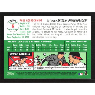 This is a 2012 Topps Archives Paul Goldschmidt baseball card. The card is #6 and pictures show condition.