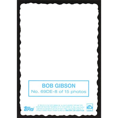 This is a 2012 Topps Archives '69 Deckle Edge Bob Gibson baseball card. The card is #8 and pictures show condition.