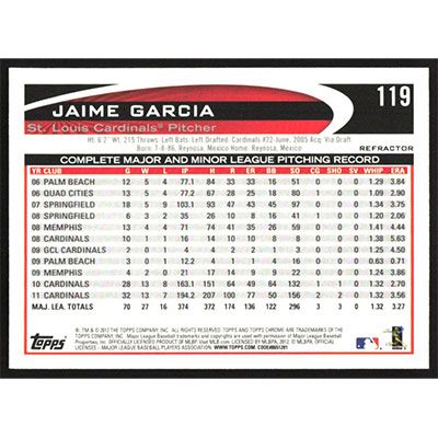 This is a 2012 Topps Chrome X-Fractors Jaime Garcia baseball card. The card is #119 and pictures show condition.