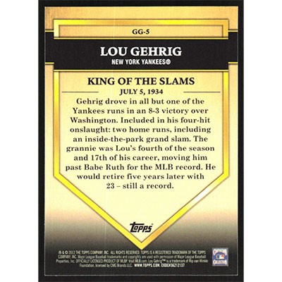This is a 2012 Topps Golden Greats Lou Gehrig baseball card. The card is #GG-5 and pictures show condition.