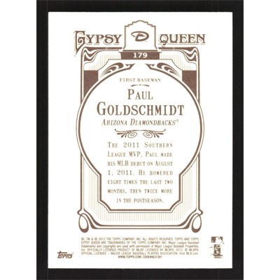 This is a 2012 Topps Gypsy Queen Paul Goldschmidt baseball card. The card is #179 and pictures show condition.