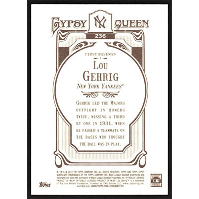 This is a 2012 Topps Gypsy Queen Framed Gold Lou Gehrig baseball card. The card is #236 and pictures show condition.