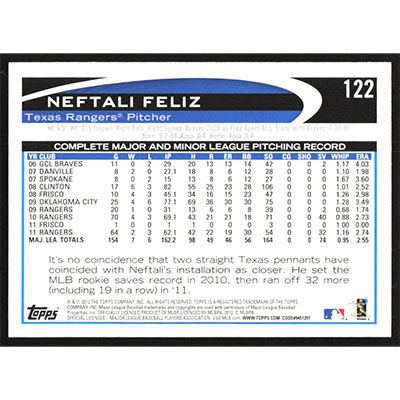 This is a 2012 Topps Opening Day Neftali Feliz baseball card. The card is #122 and pictures show condition.