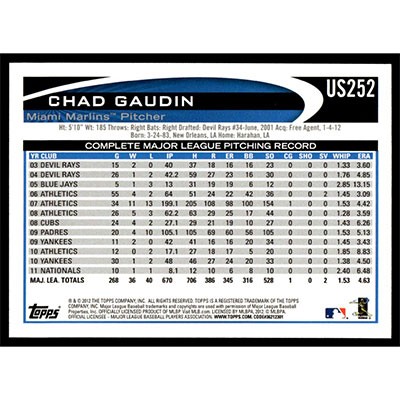 This is a 2012 Topps Update Chad Gaudin baseball card. The card is #US252 and pictures show condition.