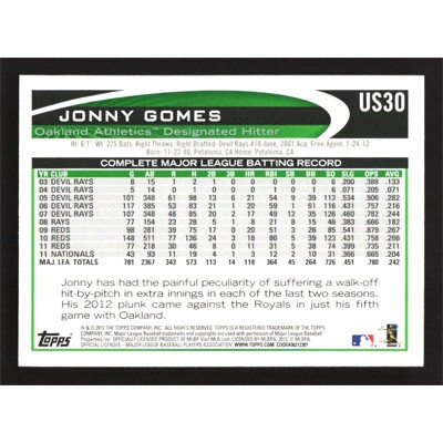 This is a 2012 Topps Update Jonny Gomes baseball card. The card is #US30 and pictures show condition.