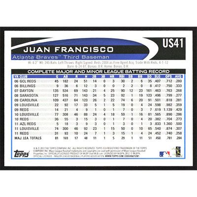 This is a 2012 Topps Update Juan Francisco baseball card. The card is #US41 and pictures show condition.