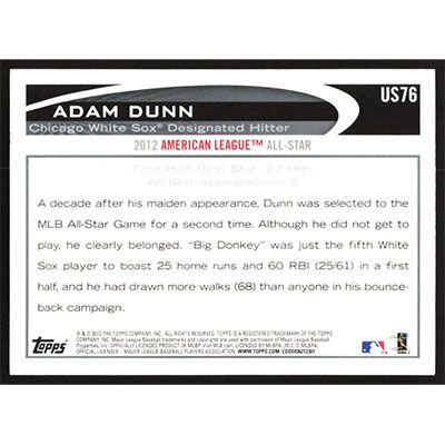 This is a 2012 Topps Update Adam Dunn All-Star baseball card. The card is #US76 and pictures show condition.