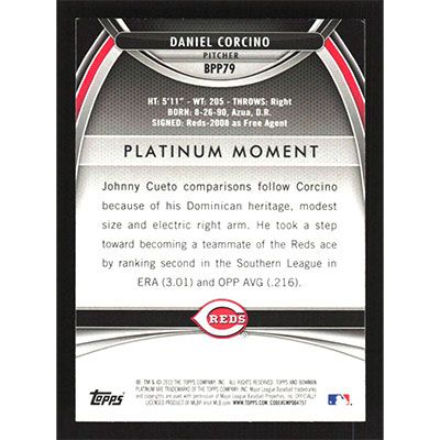 This is a 2013 Bowman Platinum Prospects Daniel Corcino baseball card. The card is #BPP79 and pictures show condition.