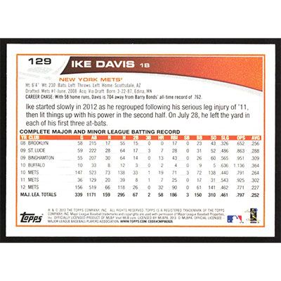This is a 2013 Topps Ike Davis baseball card. The card is #129 and pictures show condition.