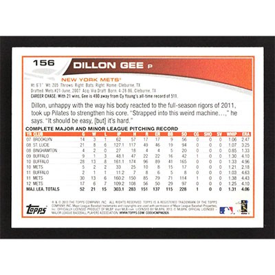 This is a 2013 Topps Dillon Gee baseball card. The card is #156 and pictures show condition.