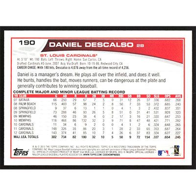 This is a 2013 Topps Daniel Descalso baseball card. The card is #190 and pictures show condition.